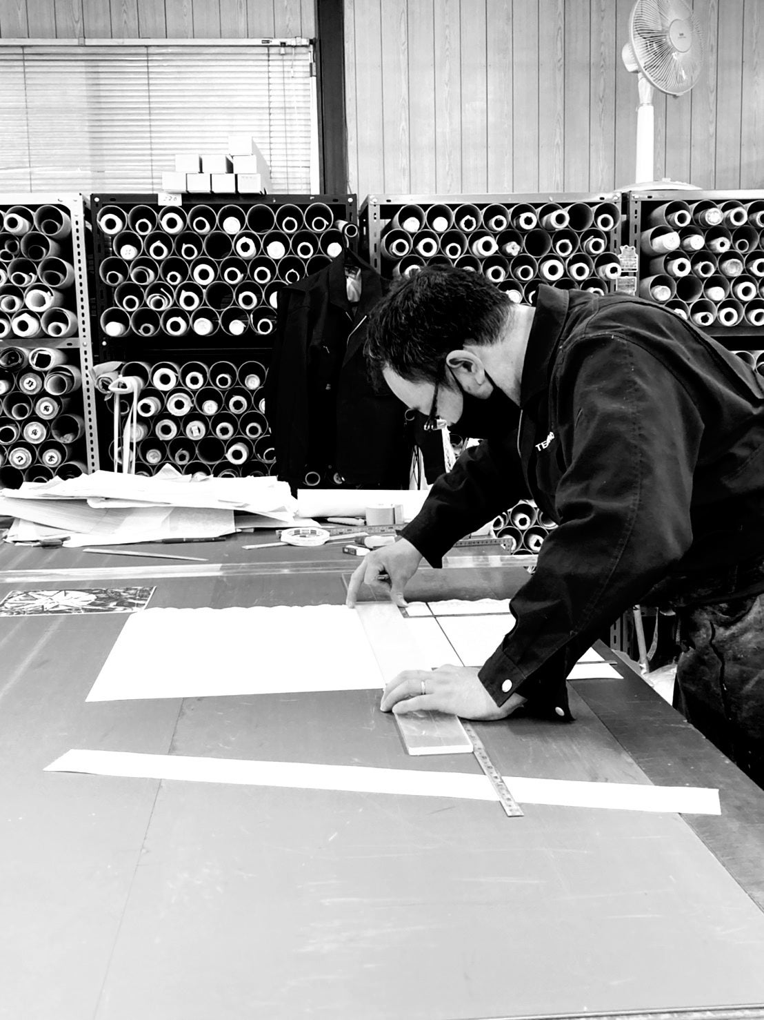 今回はこの掛け軸の切れ端を使った名刺入れを作成し、持ち歩ける商品にすることにしました。