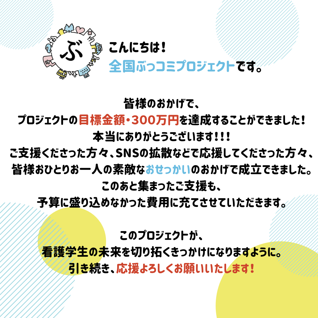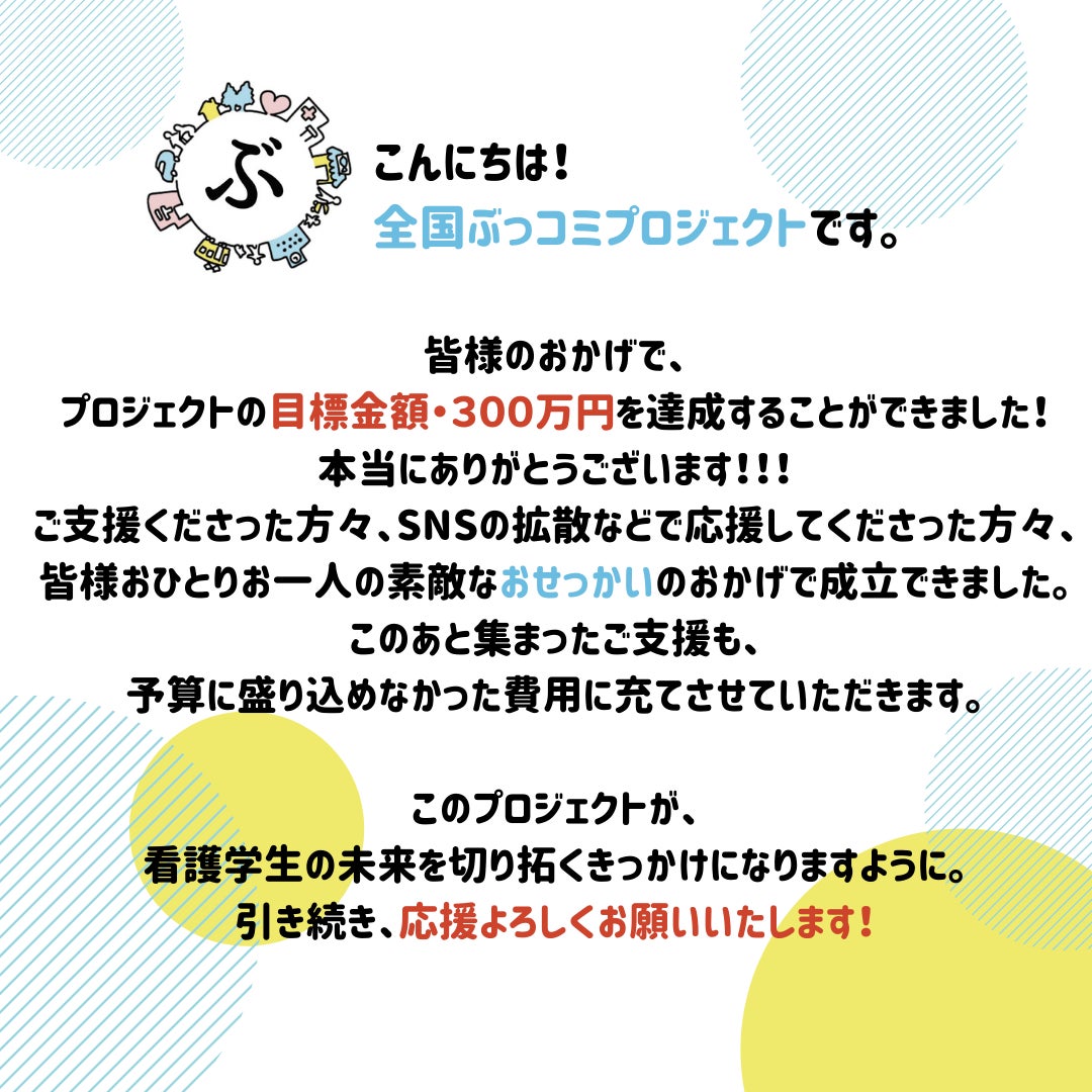 クラファンから、全国へのぶっこみを完遂するまでに、どのくらい医療以外の学生も巻き込んでいけるかについても、ぜひ見守っていただけたらと思います。