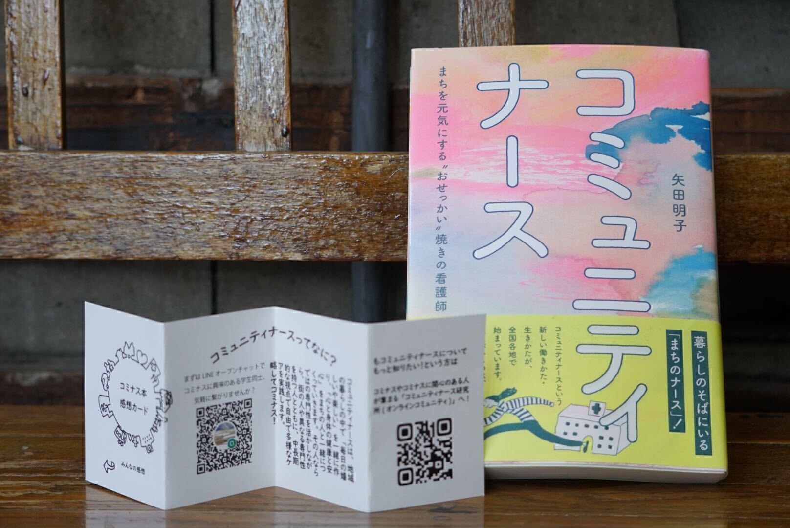 「コミュニティナース」の本と、手作り感のある「感想カード」