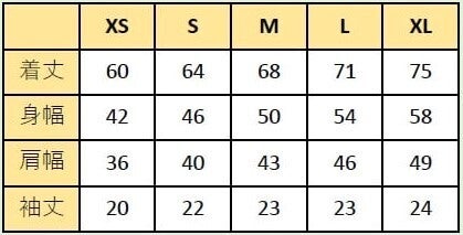 ご参考までに、こちらのサイズ表をご覧ください。