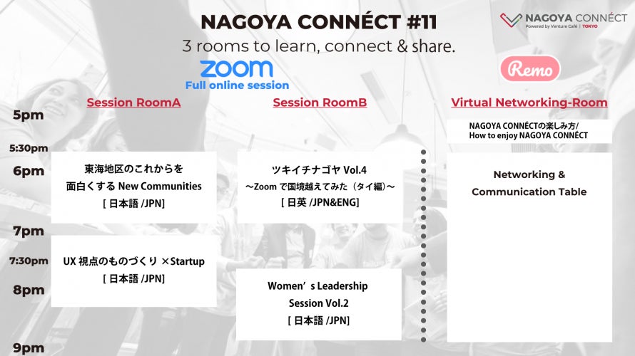 主 催:名古屋市 共催:なごのキャンパス 運営:Venture Café Tokyo