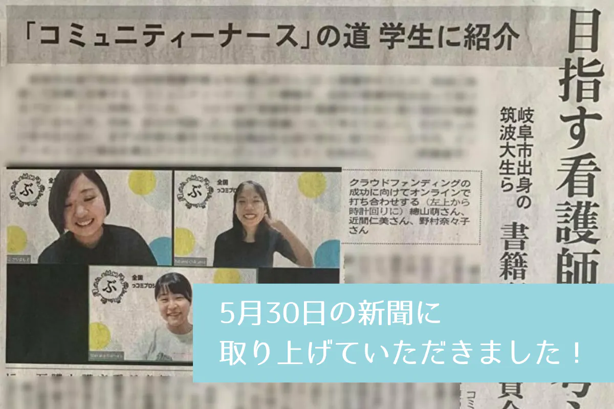 1面にかなり大きく掲載していただき、ぶっコミプロジェクト一同、とてもびっくり嬉しく思っています。コミュニティナースを届けたい思いが、新聞を通じて誰かの心に届くといいなと思います。