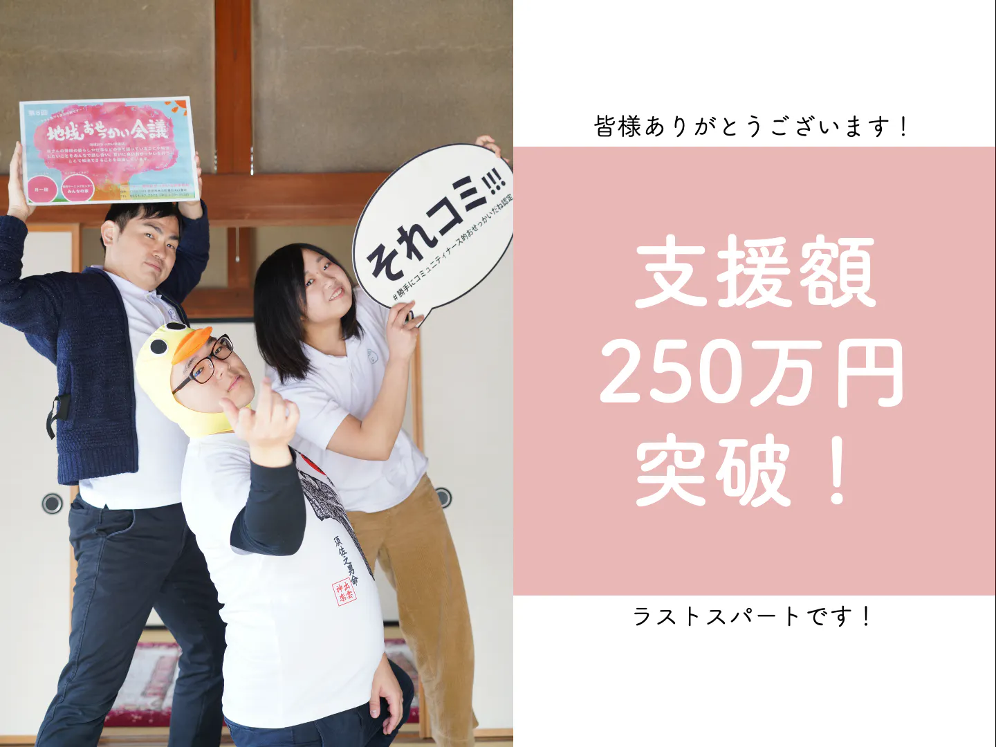 昨日の夜、200万円突破!のご報告をさせていただきましたが、250万円を突破しましたので改めましてご報告です。
