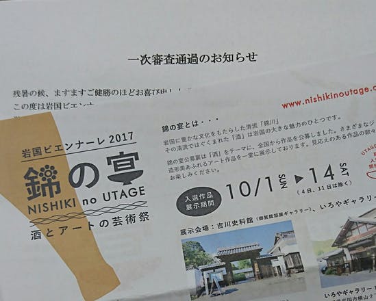 錦の宴 岩国ビエンナーレに作品が一次審査を通過し(入選)、作品が展示されることになりました