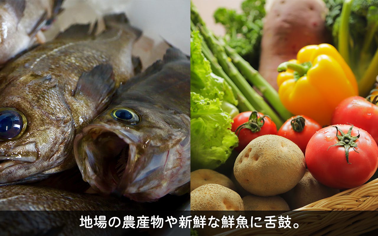また、瀬戸内は新鮮な食材の宝庫です。地場の農産物や新鮮な鮮魚を活用したメニューを提供します。(地産地消)