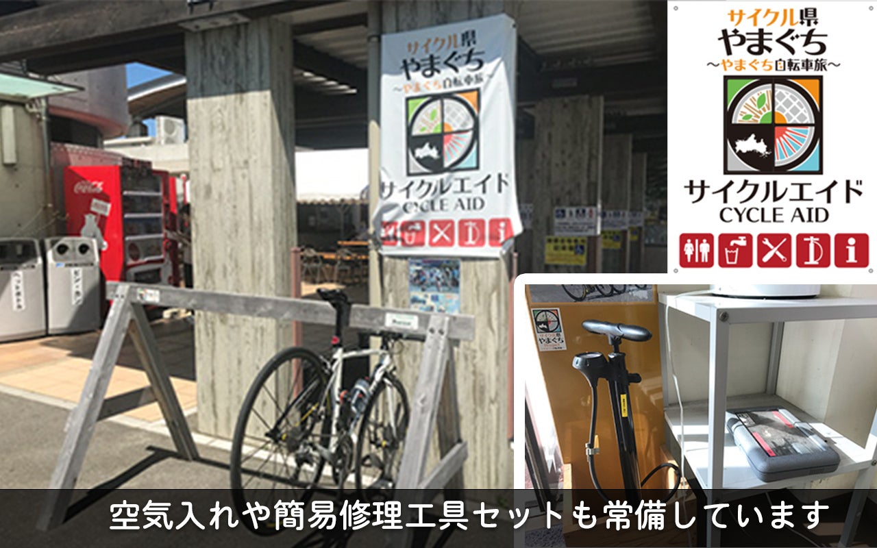 海岸線にはサイクルエイドが整備されています。サイクルラックや飲料販売等による給水、トイレなど、休憩のために必要なサービスが提供されています。