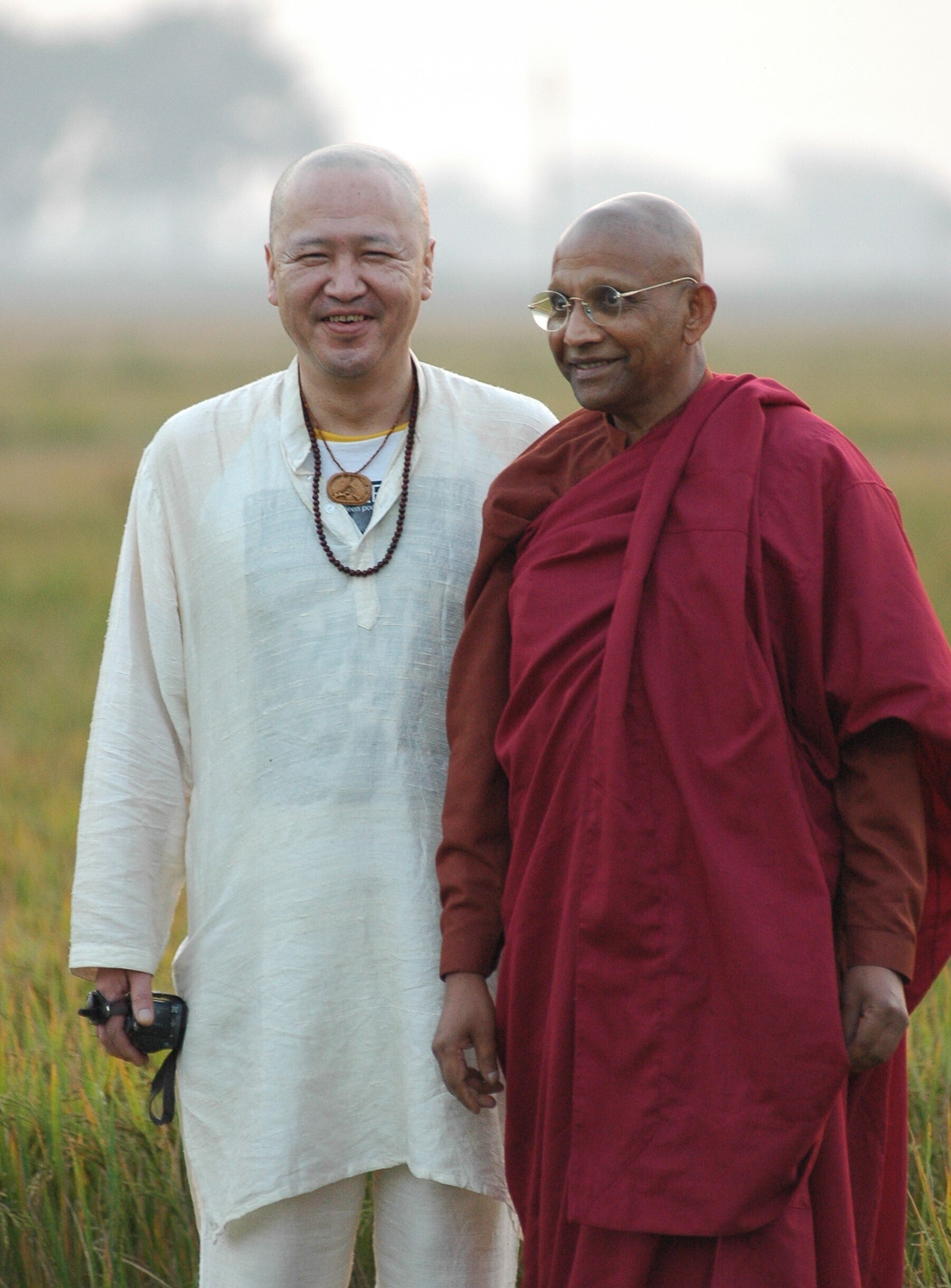 2009年には、サンガ主催でスマナサーラ長老との「インド仏蹟の旅」を実現しました。スマナサーラ長老の横で嬉しそうに微笑む島影透氏。(撮影:相田晴美)