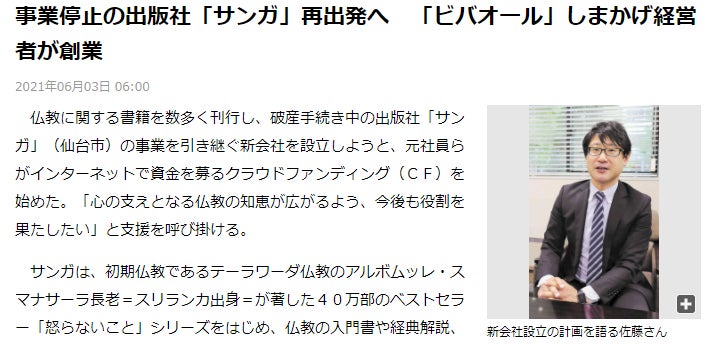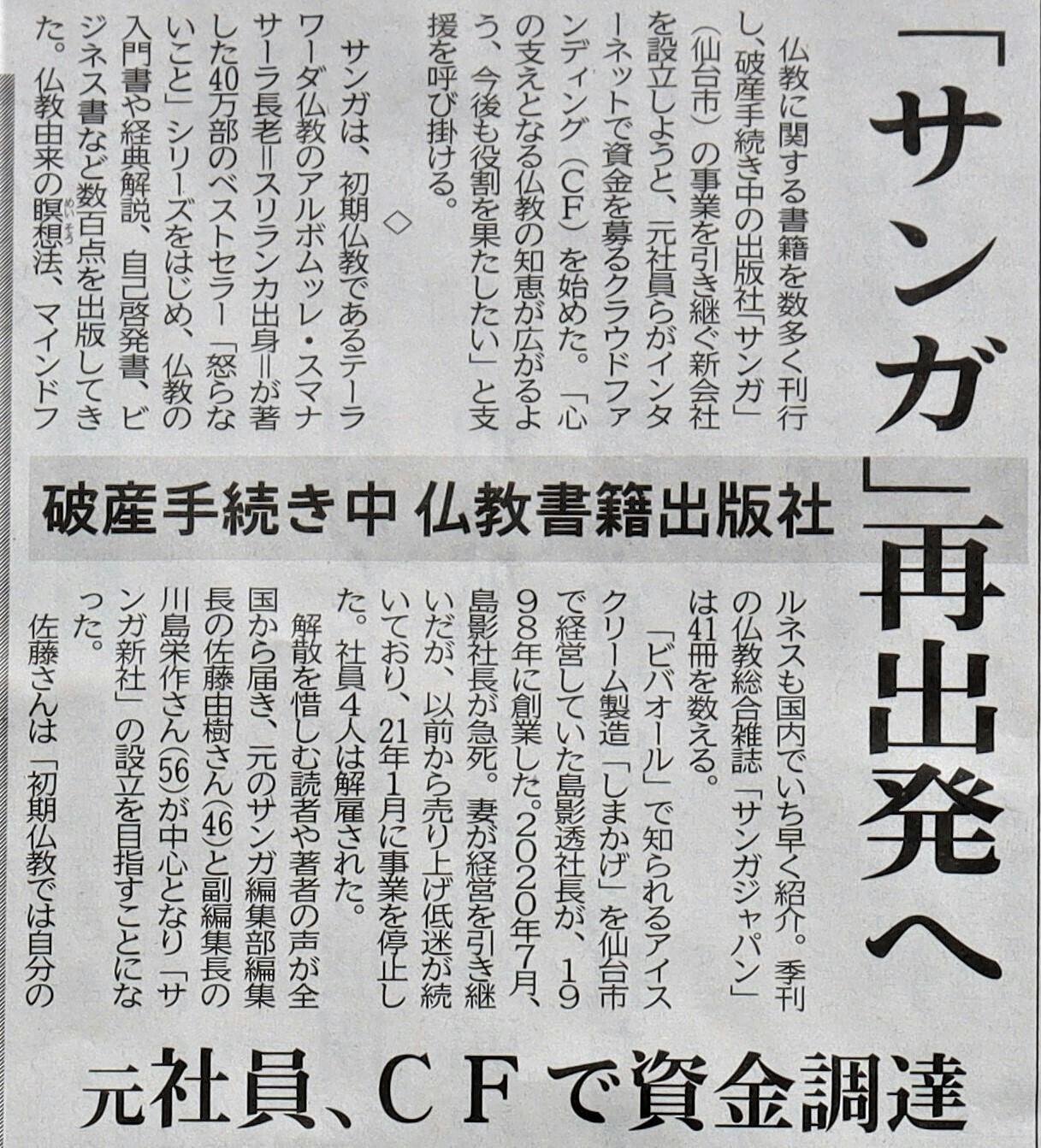 「サンガ復活」を目指すクラウドファンディングの取り組みを、仙台にある東北ブロック紙『河北新報』に掲載していただきました!