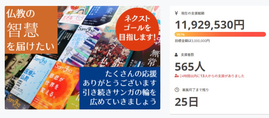 まもなく1200万円! たくさんのご支援ありがとうございます
