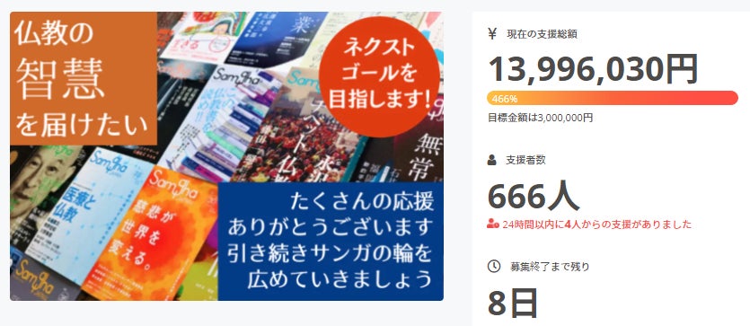 現時点で支援者は「666人」、支援金もまもなく「1400万円」という大きな金額に到達しようとしています。