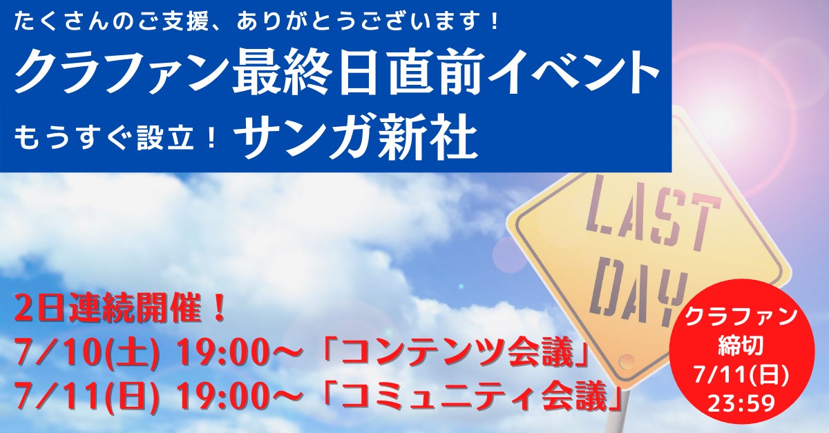 【7/11(日)20時】クラファン最終日直前オンラインイベント:サンガ新社「コミュニティ会議」