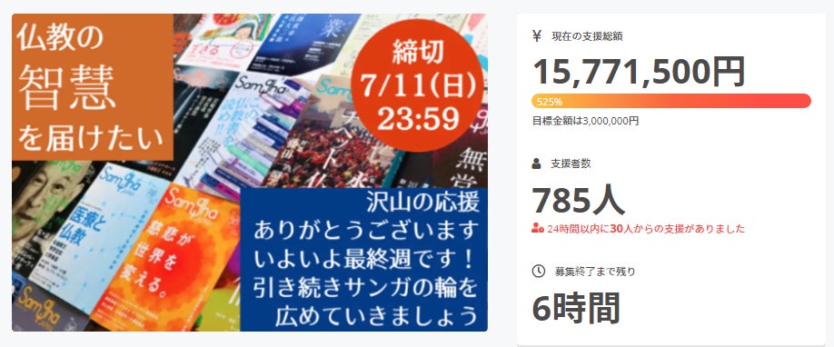今回のクラファンは、サンガ新社を応援してくださるだけでなく、「仏教の智慧で、この世界をより良くしていこう」と思っている人々が、これだけたくさんいるのだということを示した出来事でもあると感じています。