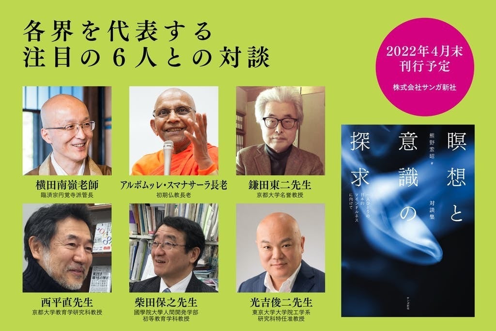 そのテーマを考える旅が、熊野宏昭先生の対談集『瞑想と意識の探求:一人ひとりの日本的マインドルネスに向けて』です。