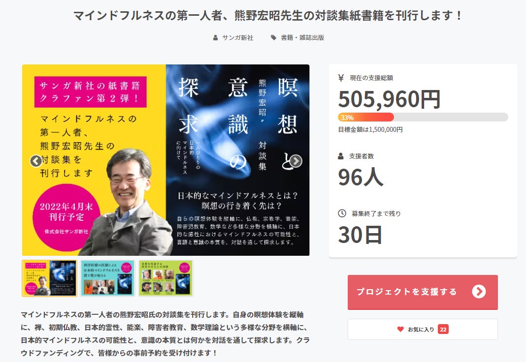 現在、サンガ新社では、本書刊行のための制作費150万円を目標に掲げ、クラウドファンディングにチャレンジしています。