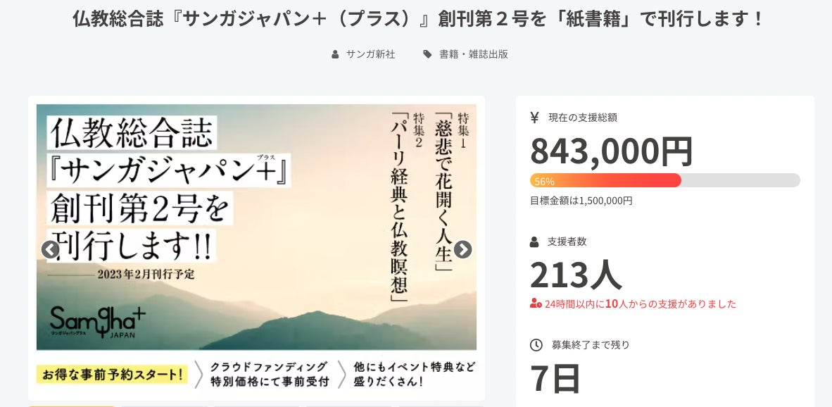 『サンガジャパン+Vol.2』のクラウドファンディングも、残すところ「7日」となりました。