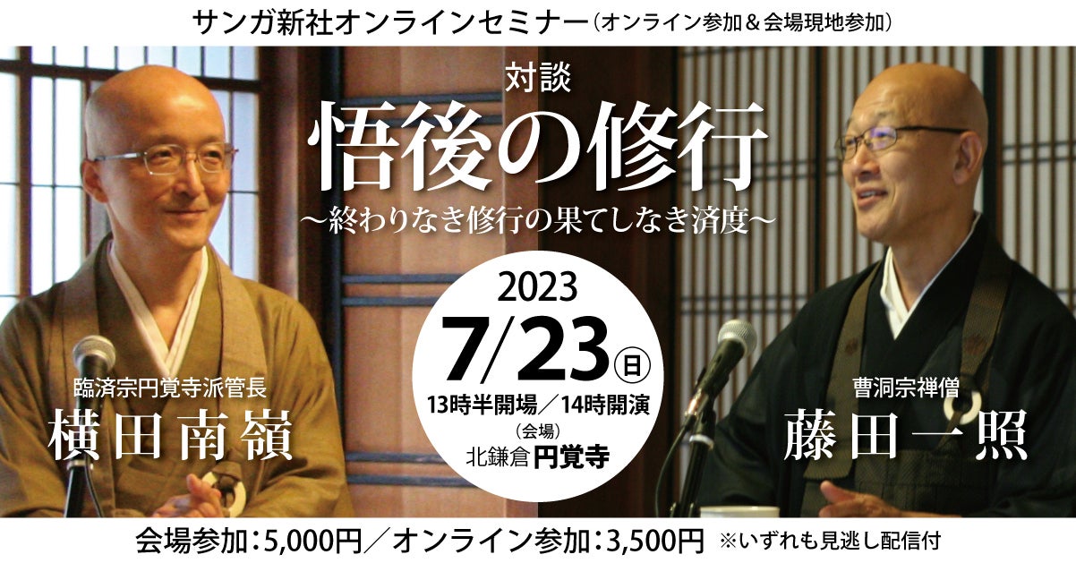 横田南嶺老師と藤田一照師によるサンガ新社セミナーを、7月23日(日)に開催します。