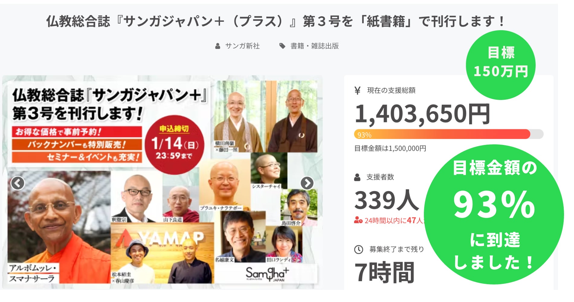 2024年2月に刊行する仏教総合誌『サンガジャパン+ Vol.3』は、「1月14日(日)11:59」までクラウドファンディングで事前予約を受け付けています。