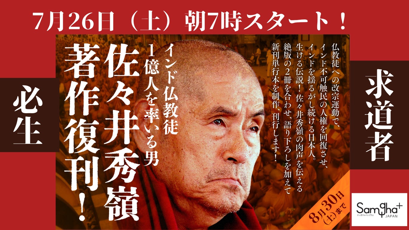 内容は、現在絶版になっている佐々井秀嶺師の2冊の著作、2015年にサンガ新書として刊行した『求道者』と、2010年に集英社新書として刊行した『必生 闘う仏教』を1冊にまとめ、あらたに語り下ろしを加えて、単行本としての刊行です。