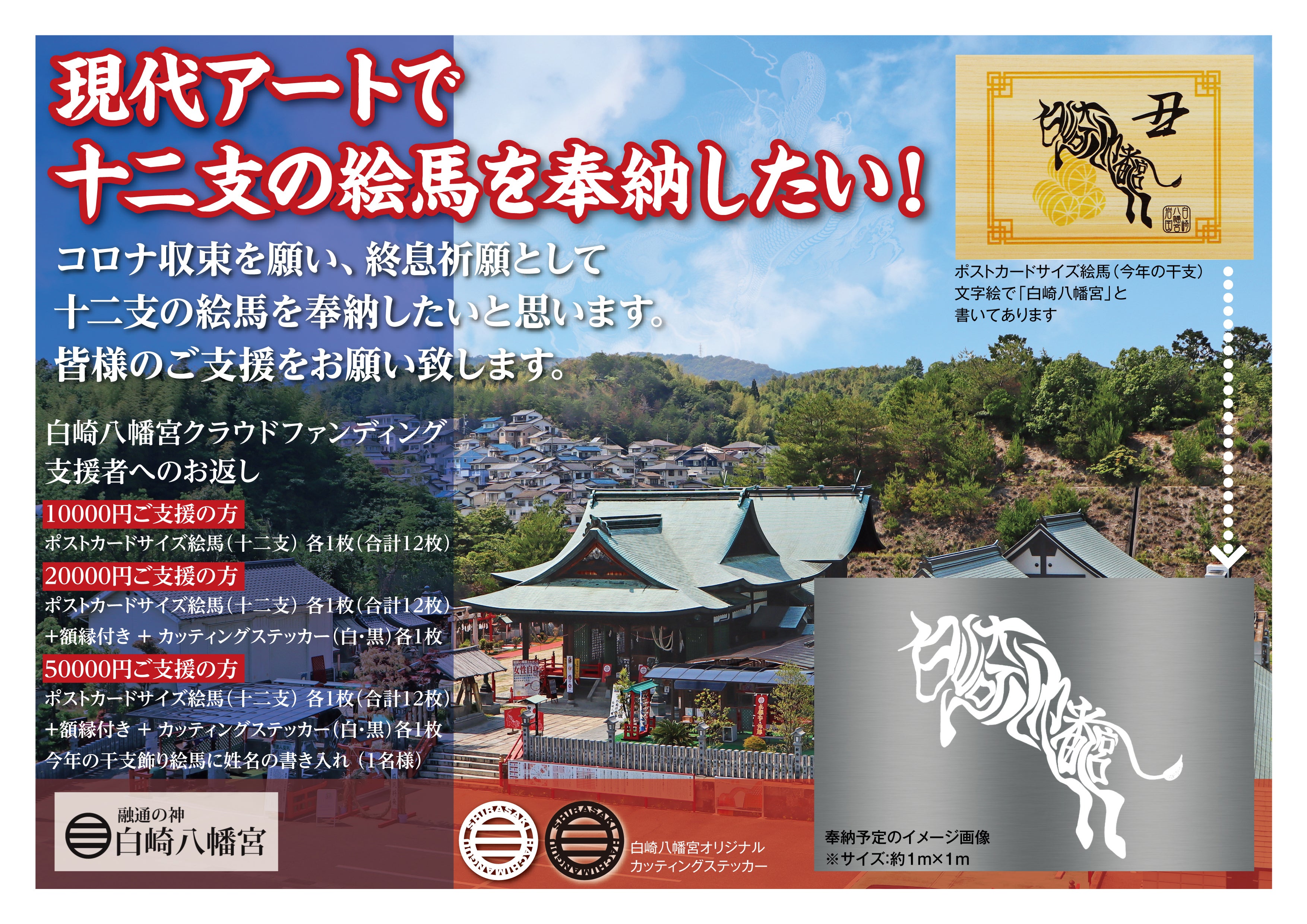 現代アートの文字絵で大きな十二支の絵馬(サイズ:約1m×1m)をコロナ撲滅の思いを込めて白崎八幡宮に奉納したいです。