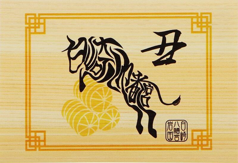 下記の絵馬は「白崎八幡宮」の文字絵になっており、ヒノキに印刷されています 。