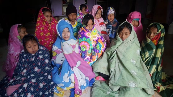 可愛い毛布に皆包まり寒さを凌ぎます。