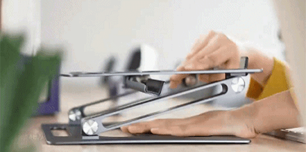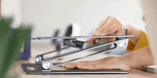 0°から360°という大規模な傾斜範囲及び高さ調整を可能にしています。これにより、様々な状況に適した角度を提供します。 一般的なPCスタンドでは、調整出来る角度が制限されているものもあるため、背中を丸めて画面をじっと見つめる必要が多々あります。革新的なデザインにより、正しい姿勢で快適にスクリーンに顔を向けることが可能です。