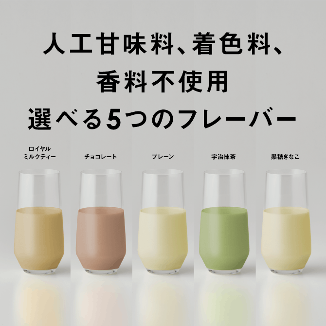 これらはすべて、安心して飲み続けられるように、人工甘味料、着色料、香料を一切使わずに、おいしく仕上げました。