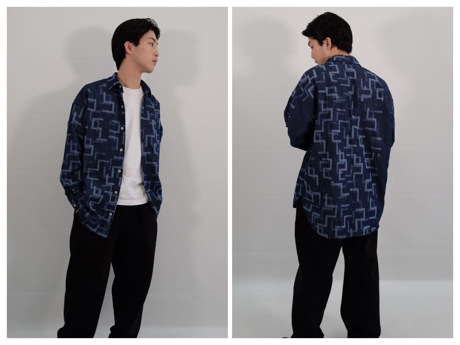 サスティナブルへの強い意識を持ったカメレオンチームと作り上げたのは、MADE IN JAPANのクオリティにこだわった、オリジナルプリントのデニムシャツです。