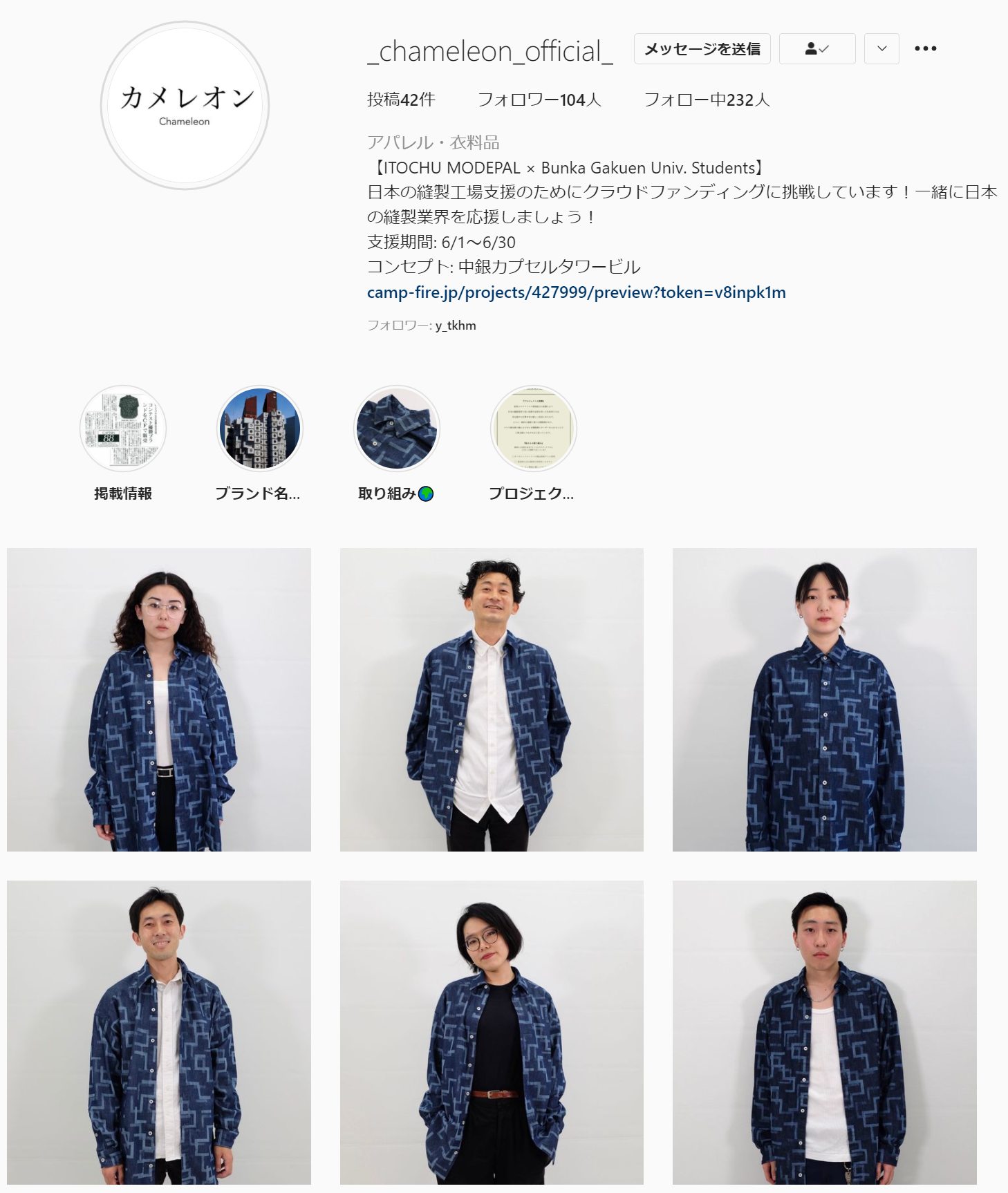 日本のものづくりに携わる当社として、何か出来ることは無いのか?と考えていたところ、当社社員が卒業生であるというご縁から、文化学園大学の学生が企画したブランド「カメレオン」とコラボすることになりました。