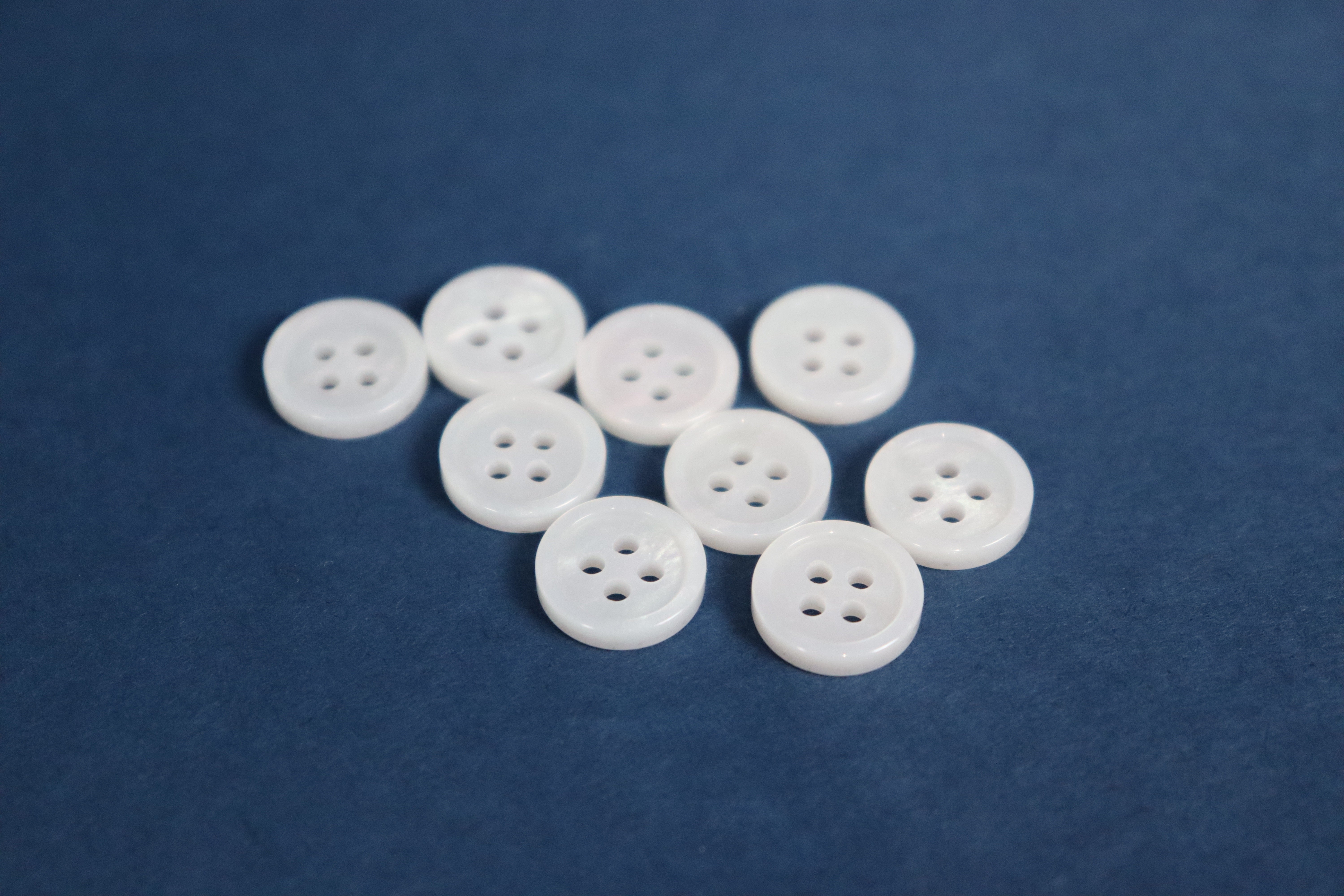 表面からは貝調釦になるよう仕上げて、2層の釦となっています。