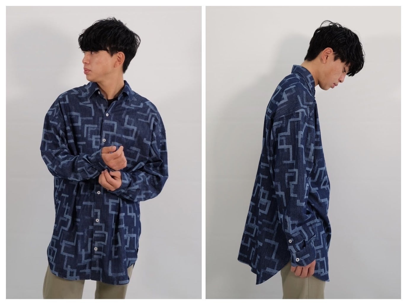 サスティナブルへの強い意識を持ったカメレオンチームと作り上げたのは、MADE IN JAPANのクオリティにこだわった、オリジナルプリントのデニムシャツです。