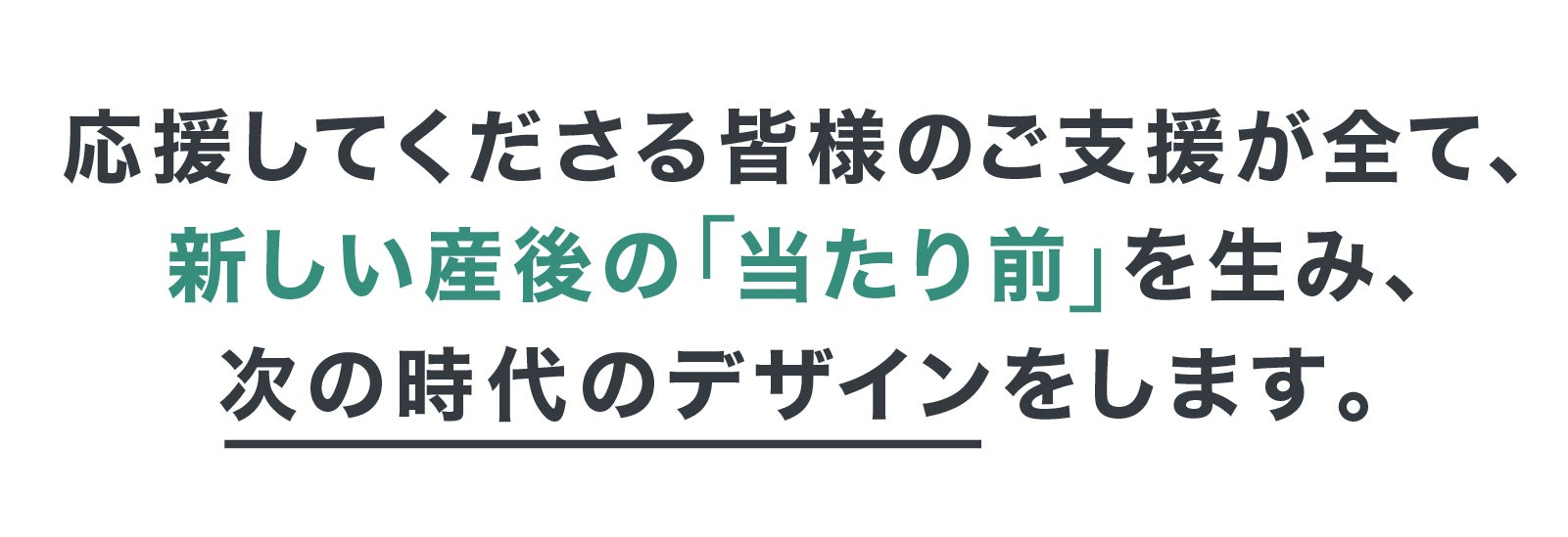 最後に、皆様からお借りした力を私たちは持続的な事業の出発点とし、モノの提供で終わることなく、サービスやコンテンツを通して産後を大切にする文化の醸成をしていきます。