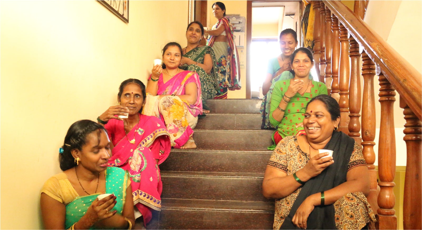 巾着袋はムンバイに住む女性たちが一つ一つ丁寧に作っています。女性の中にはシングルマザーの方や援助が必要な社会的弱者の方が大勢いますが、巾着袋の流通によって
