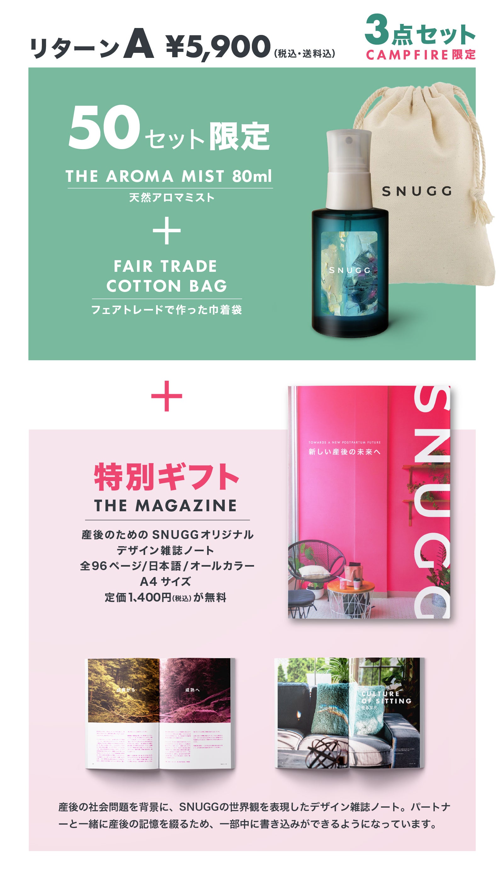にもつながります。シサム工房様の活動が、私たちとしても最も大切にしている「居心地いい産後の生活をつくる」ミッションと合致し、今回の取組を決定いたしました。皆様にSNUGG The Aroma Mistと巾着袋をセットでご提供することにより、日本のみならず、