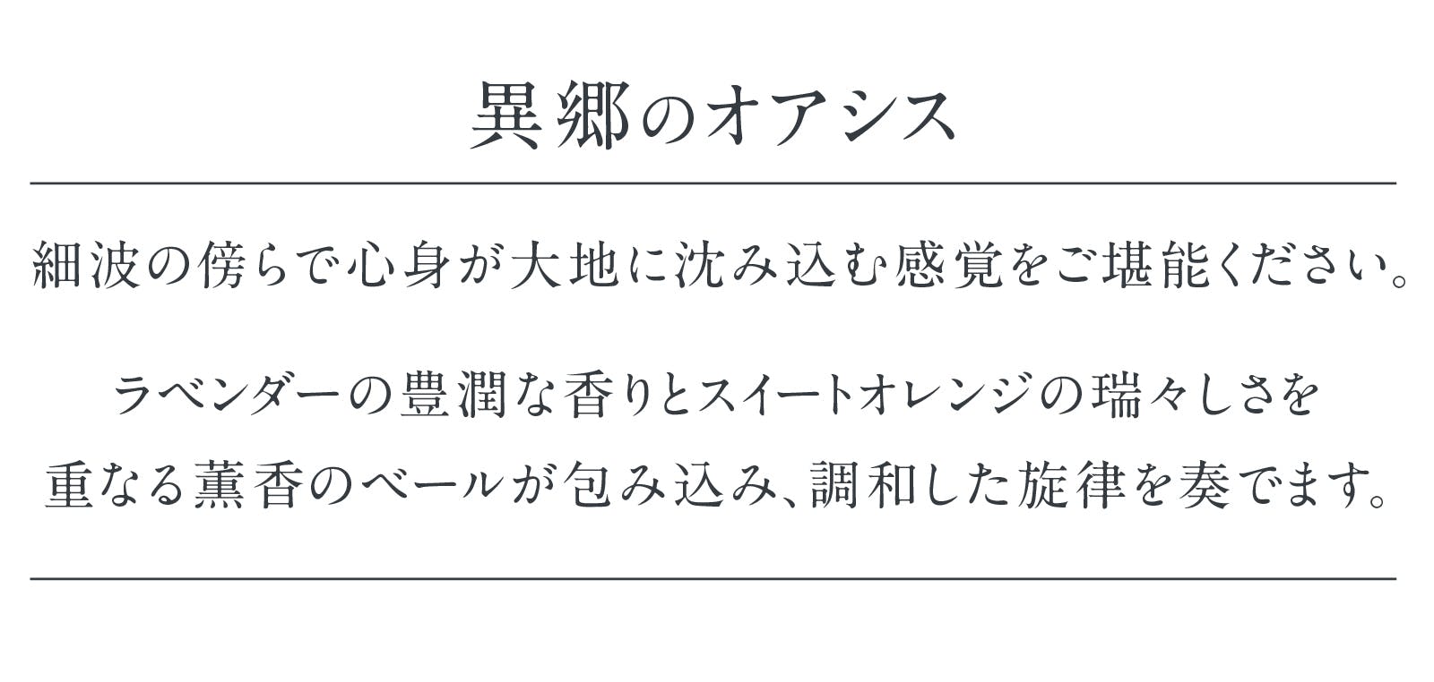 微妙な匂いや感覚に敏感な産後の母親からの評価はもちろんのこと、男性や子供が香っても生活空間に支障の出ない調合を目指し、半年以上の時間をかけて妥協のない開発を目指しました。そして、ラベンダー・スイートオレンジをベースに数種の精油を完璧な黄金比で混ぜ合わせ、
