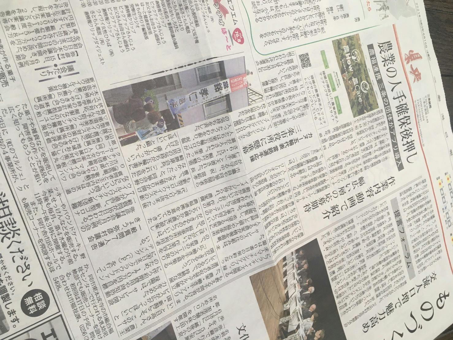 本日、新潟日報で記事を取り上げていただきました!日報様は禄陽を立ち上げた時から取材をしてくださり、大変感謝しております。今回も私たちの想いを余すことなく記事にしてくださいました。