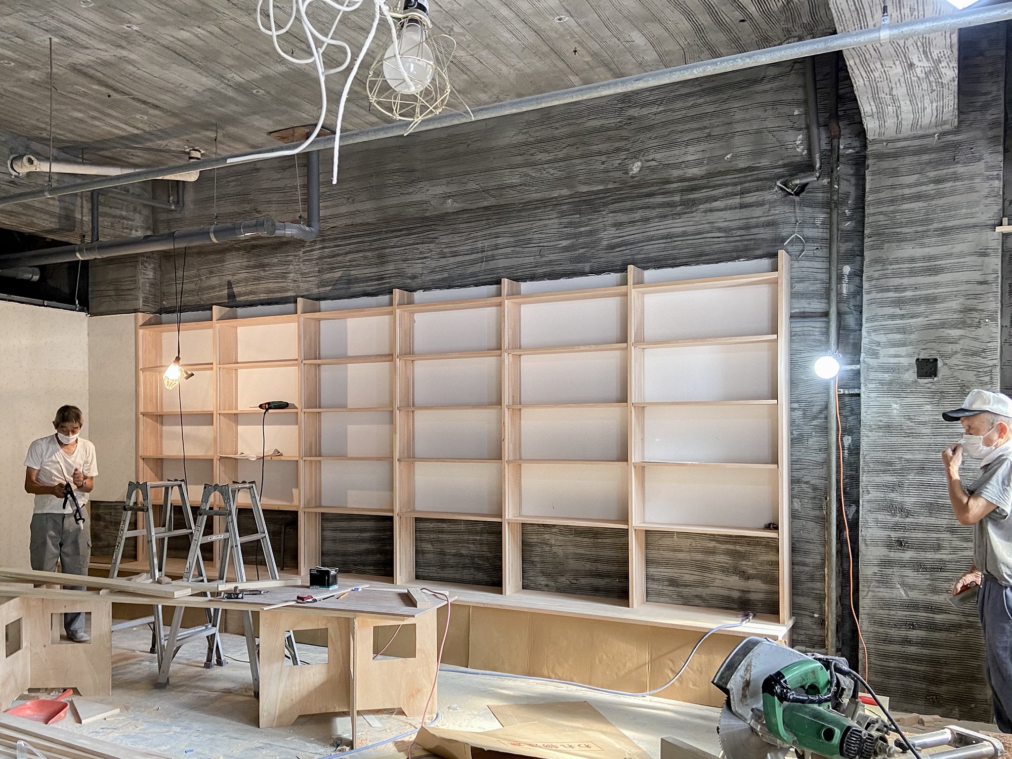 家具工事が進み、少しずつ形になってきました。今日は来週末の漆喰塗りワークショップへ向けて下地塗り作業をしてきます。ワクワクです!