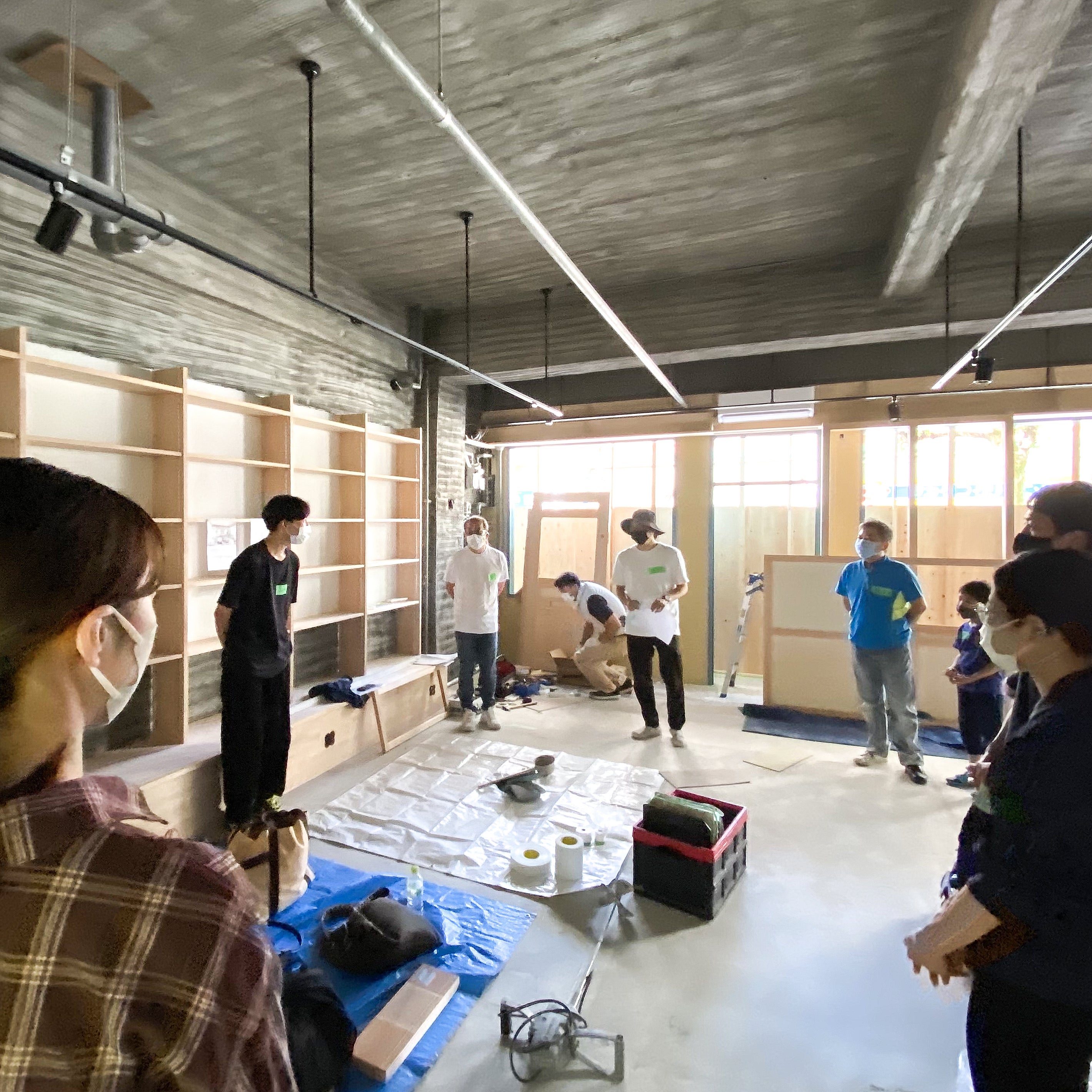 おかげさまでクラウドファンディング支援者数が100人を突破しました。ありがとうございます!そして残り10日のカウントダウンがはじまりました。10日間がんばります!本日は漆喰塗りワークショップ1日目でした!三重の左官職人杉本様にご指導いただき、大学生のみなさんがまず、養生、そして下地塗りとがんばってくださいました。下地だけでも良い感じです!丸一日参加の学生さんのお二人も本当にありがとう!そして、今日は小さな本棚を塗ったり、看板を外して確認したり、という細々とした作業も並行して行っていたのですが、可愛い参加者の男の子が、看板をすごくがんばってキレイにしてくれてとても嬉しかったです!明日も漆喰塗りワークショップ開催します。本塗りです!