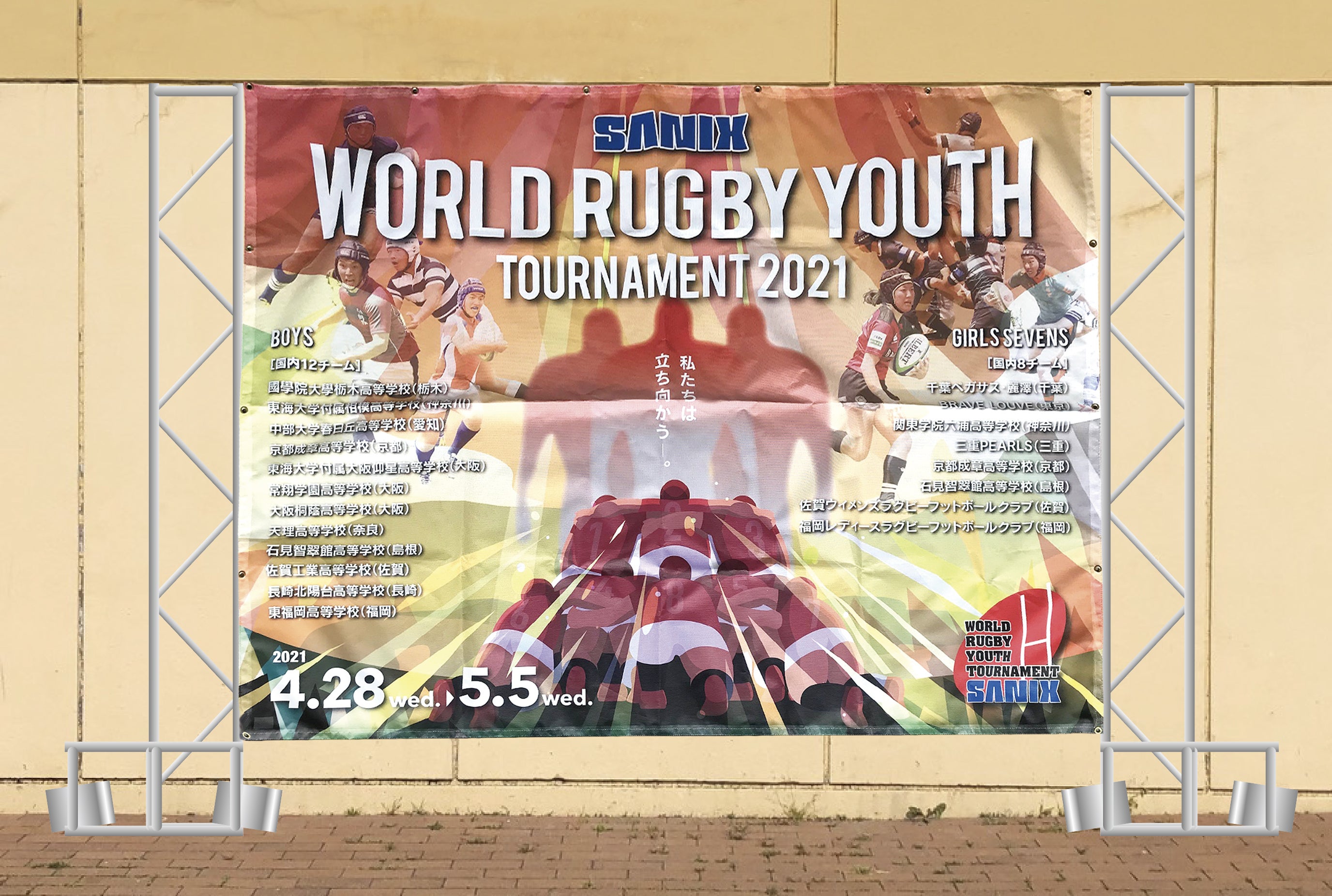 毎年、写真のようなシート(横2.7m × 高さ2.1m)を作成し、この前でインタビューをしたり、ウェルカムパーティーや表彰式で使用したり、記念写真撮影で使ってもらったりしています。