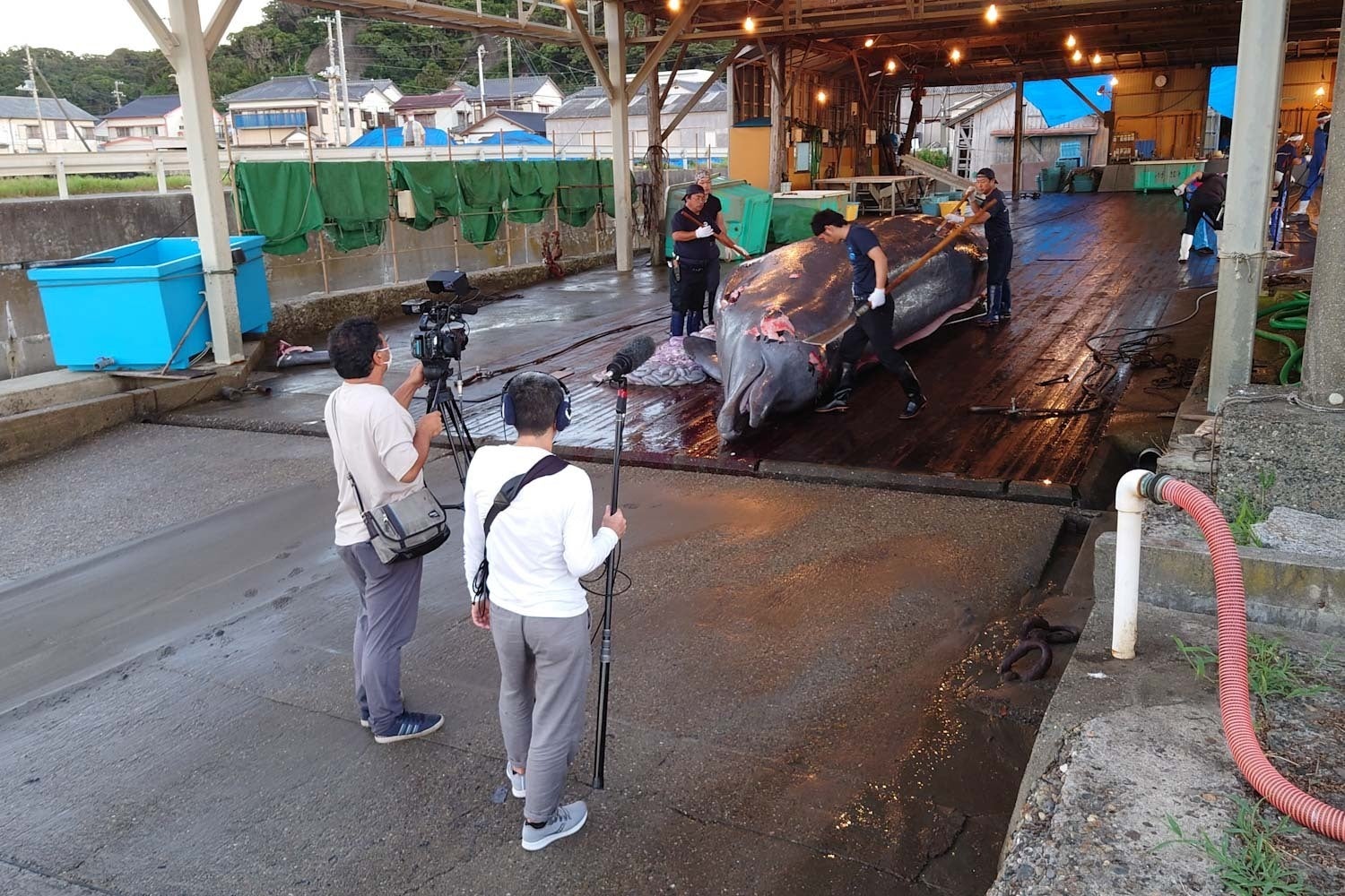 ご報告が遅くなりましたが、8月3日より始まったこの夏前半のロケは、予定した撮影をほぼこなし、8日をもって計画通り終了しました。ご支援、ありがとうございました。今回は鯨を中心とした地域の人々の暮らしを撮る予定で、ある鯨大好き家族の様子をじっくり撮影させていただくなど、新たな側面を描くことができたと思っています。ただ、ツチクジラ漁については熱帯低気圧が連続で発生し、海況が悪くて漁に出られない日が多く、8日までに水揚げは8頭にとどまっていました。その後も海況の改善は見込めないということで、外房捕鯨ではこの夏のツチクジラ漁をいったん打ち切り、捕鯨船は北上。釧路でミンククジラを捕ったあと再び和田に戻ってツチクジラ漁を行うことになりました。再開は10月ごろの見込みだそうです。私どもは8月下旬に後半の撮影を予定していましたが、この決定にあわせて順延し、次のツチクジラ漁の時期にまた撮影を行う予定です。これによって、製作スケジュールも変更を余儀なくされる可能性がありますが、それについては追ってご連絡いたします。引き続き、ご支援のほどをよろしくお願いいたします。