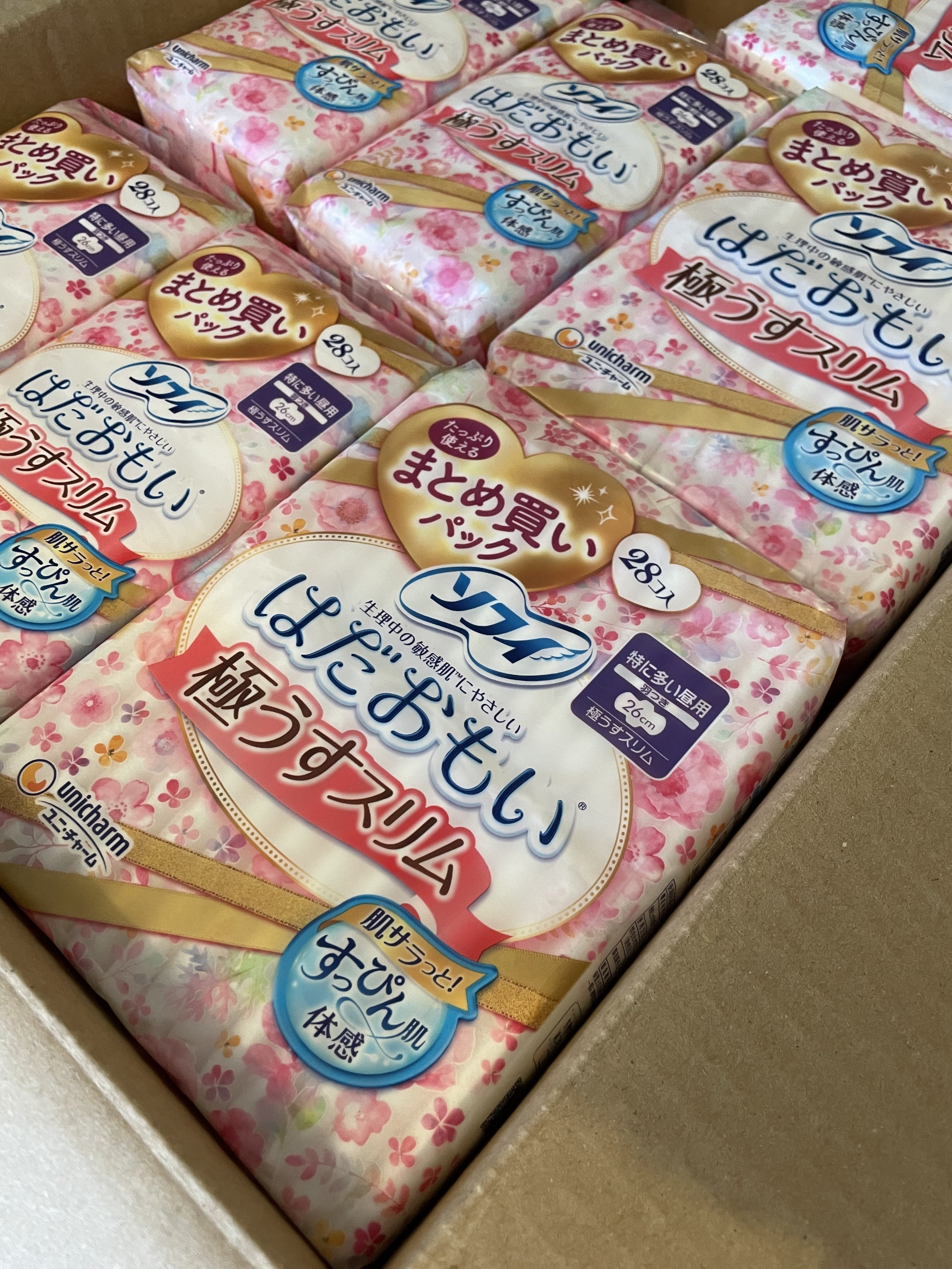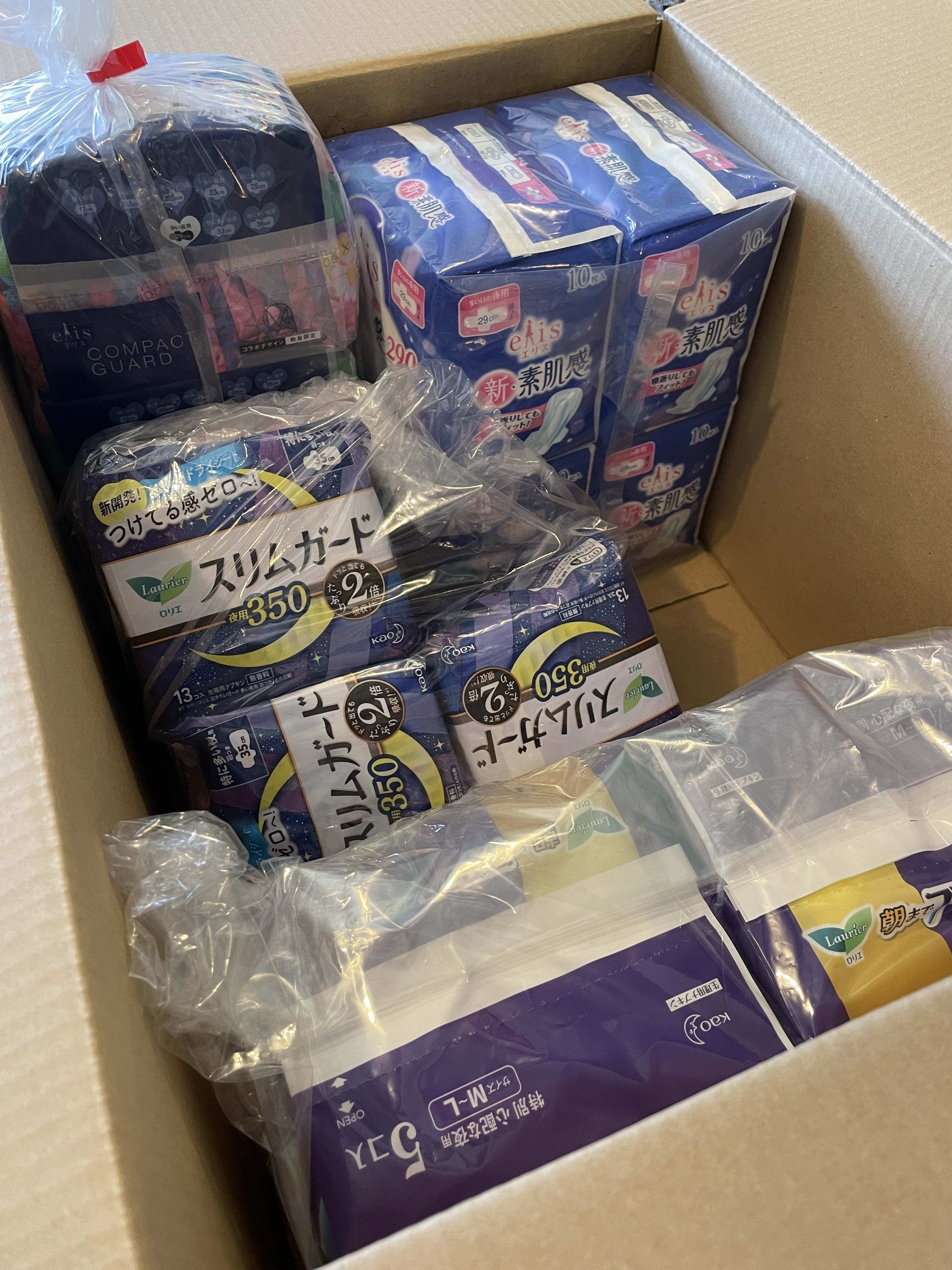 今日は店舗に段ボール2箱の生理用品が届きました!