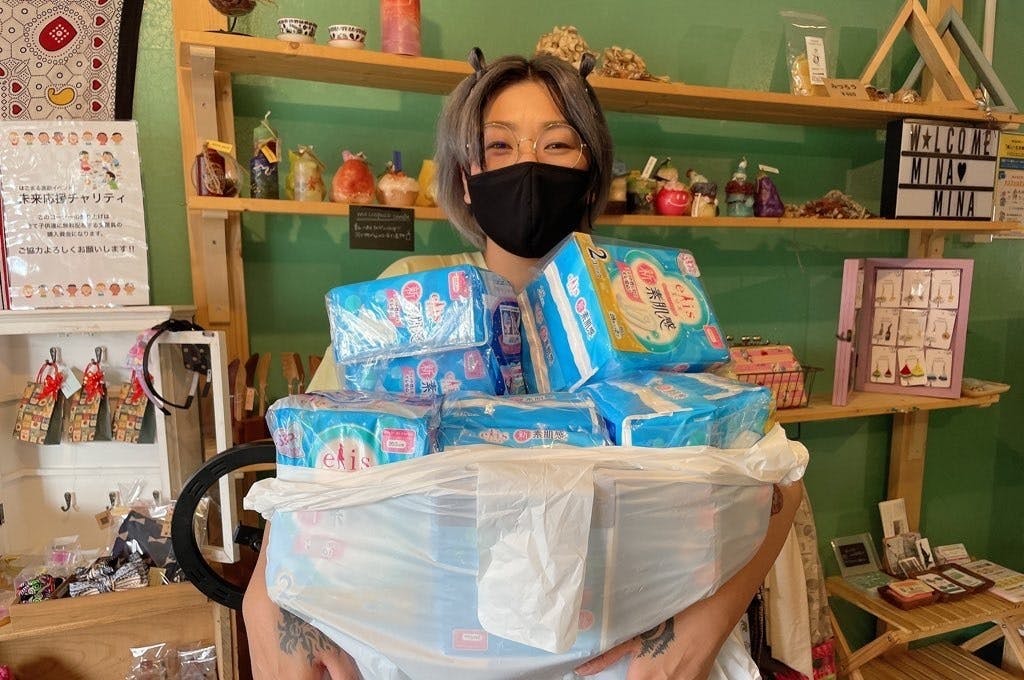 今日はボランティアスタッフのお友達が、沢山の生理用品を寄付してくださいました!本当にありがとうございます。