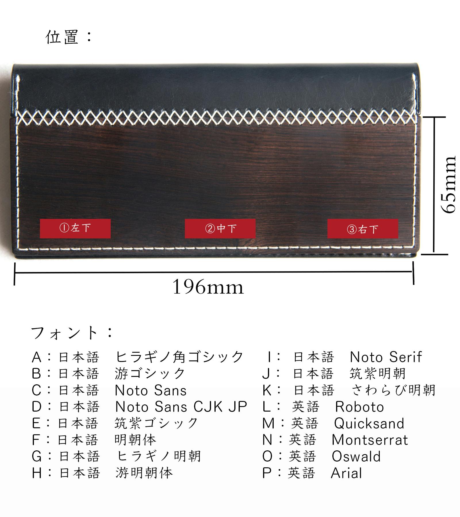 刻印は3つの位置や16種類のフォントからお選びいただけます。