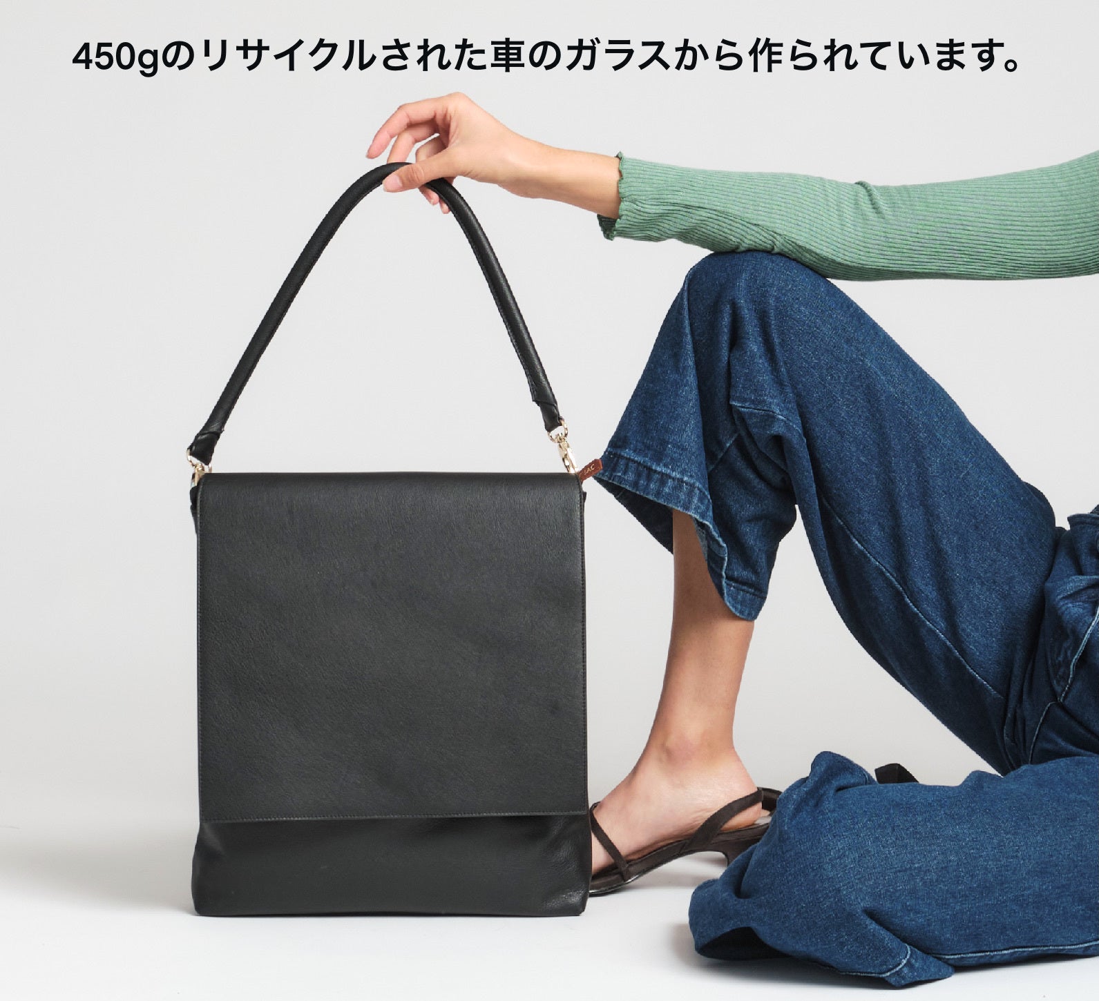 地球上に廃棄車の窓ガラスをリサイクルして作ったビーガンレザーバッグはローザバッグだけです。