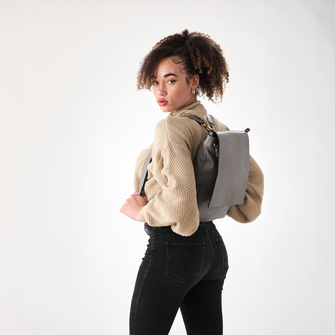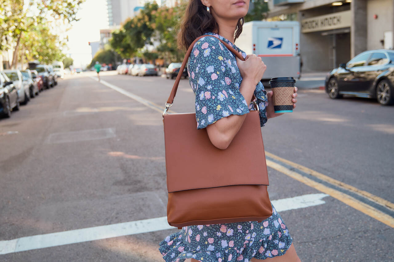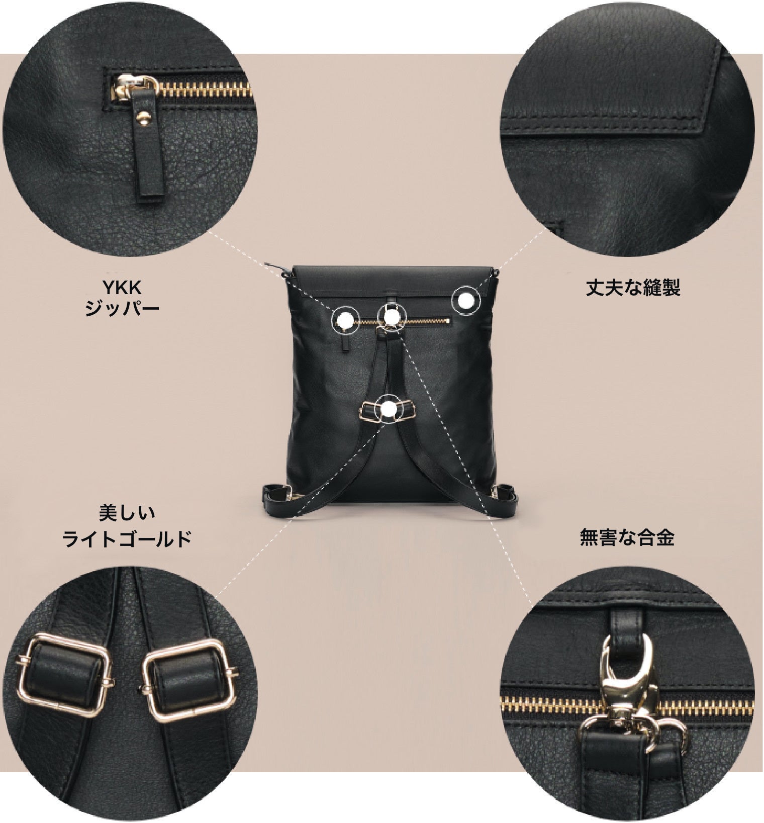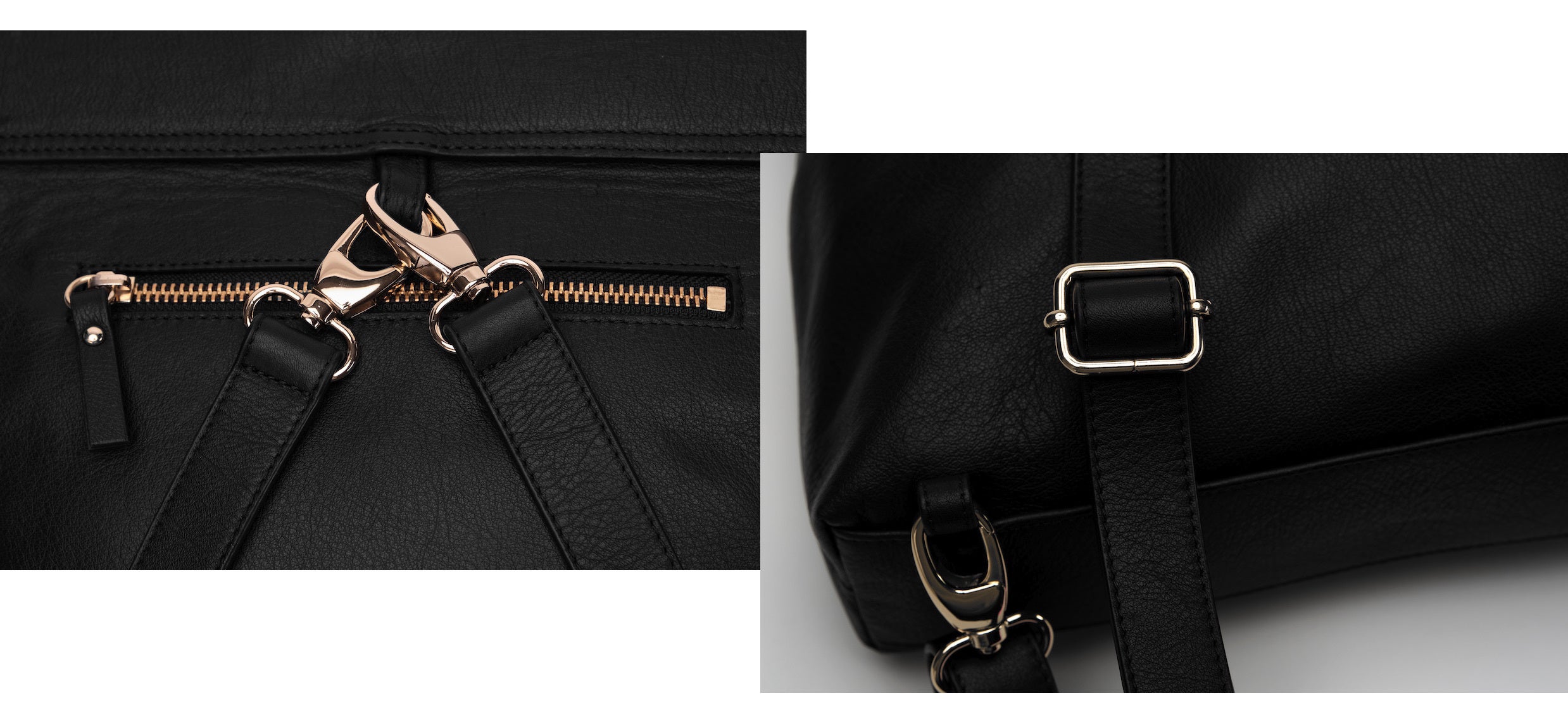 ローザバッグはストラップを付け替えるだけでショルダーバッグ、 バックパック、 クロスボディーバッグとして使え、時代を超越したスタイルと実用性を兼ね備えたエレガントなヴィーガンレザーバッグです。