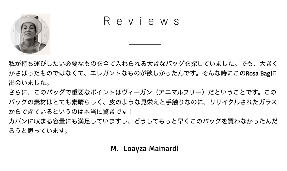 私たちL'Autre Sac Japanは、一人でも多くの人にこのローザバッグの素晴らしさを知ってもらうために日々奮闘しております。共感していただける人が少しずつ増え、生き物の命の尊さを知ることや、私たちが生きているこの地球を出来る限り住みやすい場所にしていくことが、それぞれの人生を豊かにしていくことに繋がると信じています。
