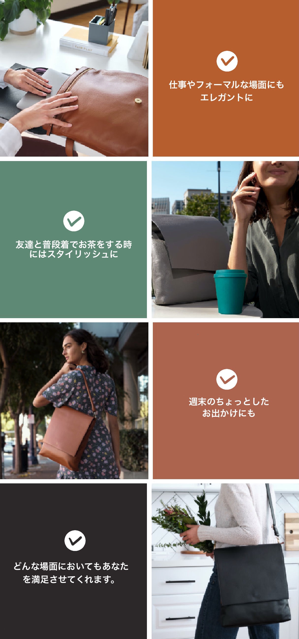 ローザバッグはその二つのコンセプトを存分に兼ね備えた新しいバッグで、環境に優しく、どんな場面においてもシームレスにお洒落を演出します。