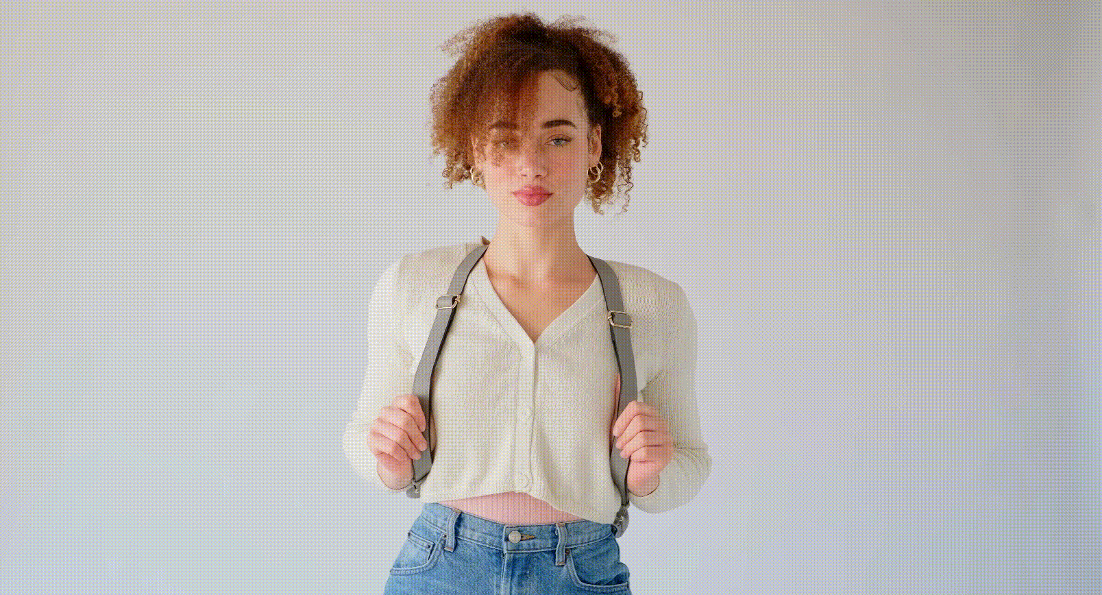 フラットストラップを1本だけ使用して、バッグの両サイドのループに取り付けます。フラットストラップは長さが調整可能なので、バックルをスライドさせてお好みの長さに調整してください。
