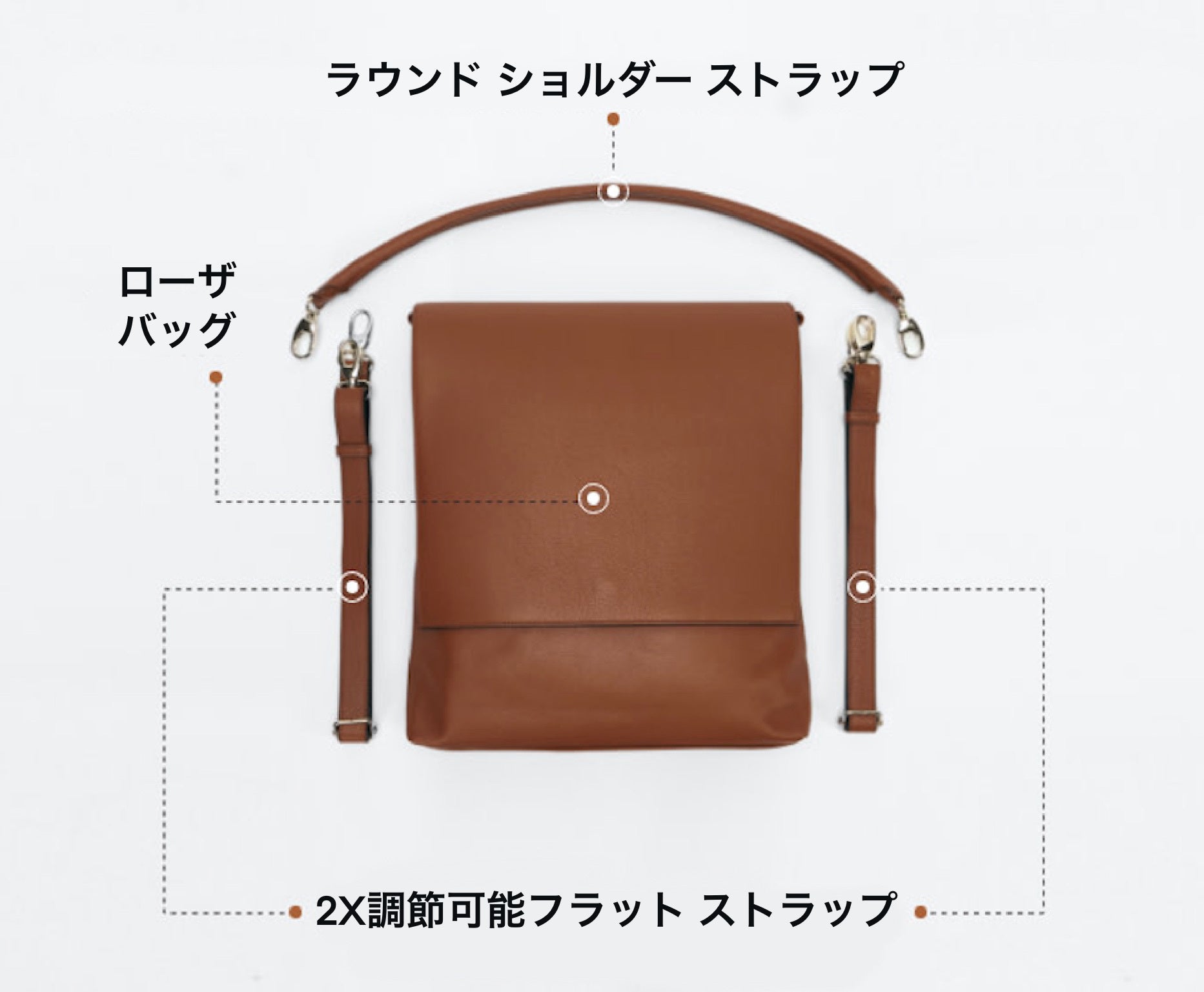 サイドループを使用して、丸みのあるショルダーストラップをバッグの両端に取り付けるだけでオッケーです。