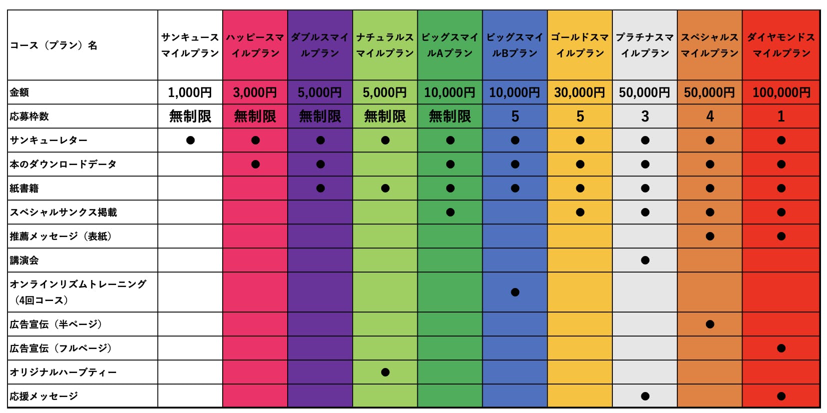 ■本の帯にお仕事のカテゴリー、お名前、リズムトレーナー西 利範への推薦文章50文字で掲載 (備考欄に約50文字での推薦メッセージを記入して頂くか、後日相談しながらの提出も可) ■紙書籍10 ■スマホ、タブレットでダウンロードして頂ける書籍のPDFをメールでお送ります ■感謝の気持ちとお礼の手紙 ■書籍の中に応援して頂いた方のお名前を掲載